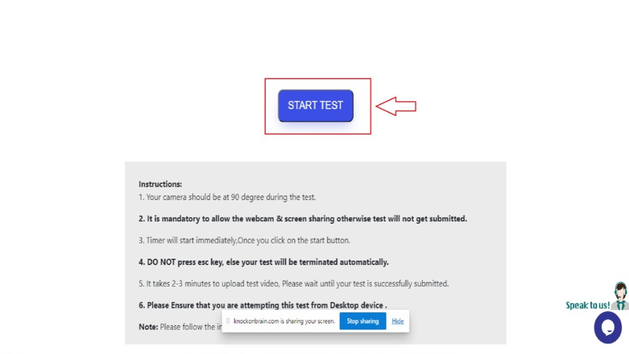 Congratulations, you are now on your test window and can start attempting the test by clicking on start test button.
